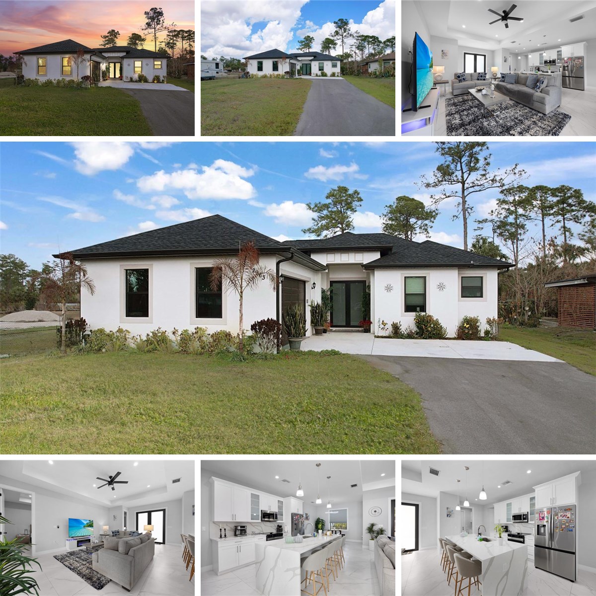 MODERN LIVING WITH INCOME POTENTIAL! Welcome to this beautifully built single-family home offering 3 bedrooms plus a den (easily used as a 4th bedroom or home office), 2 full bathrooms, and a 2-car attached garage. Situated on a cleared 100% upland lot, this property provides peace of mind and future flexibility — build a pool, workshop, or barn without the cost and complications of having to do wetland mitigation. Step inside to discover a modern open-concept design featuring a spacious kitchen with island, quartz countertops, and wood cabinetry throughout the kitchen and bathrooms. The home is completely tiled throughout, combining style with easy maintenance. Every room includes ceiling fans and modern lighting, while impact windows and doors offer safety, energy efficiency, and storm protection. Both bathrooms are thoughtfully designed offering both options of a shower or tub, and the home features neutral colors throughout along with all window blinds included, making it truly move-in ready. Enjoy outdoor living at its finest on the large screened lanai with an outdoor summer kitchen, perfect for entertaining year-round. A whole house reverse osmosis filtration system completes this property with comprehensive water purification on every tap, showers and appliances. The extended paved driveway provides ample parking for multiple vehicles. A standout feature of this property is the additional setup ideal for rental income or multigenerational living, allowing side-by-side occupancy while maintaining privacy and separation from the main home. Located in Golden Gate Estates, surrounded by similarly newer homes, you’ll enjoy the tranquility of owning land while still being just a short drive from the city center, shopping, dining, and the stunning Southwest Florida beaches. Experience the best of Naples-area living with space, privacy, and convenience. Don’t miss this opportunity to own a versatile, new construction home in one of the area’s most desirable acreage communities.